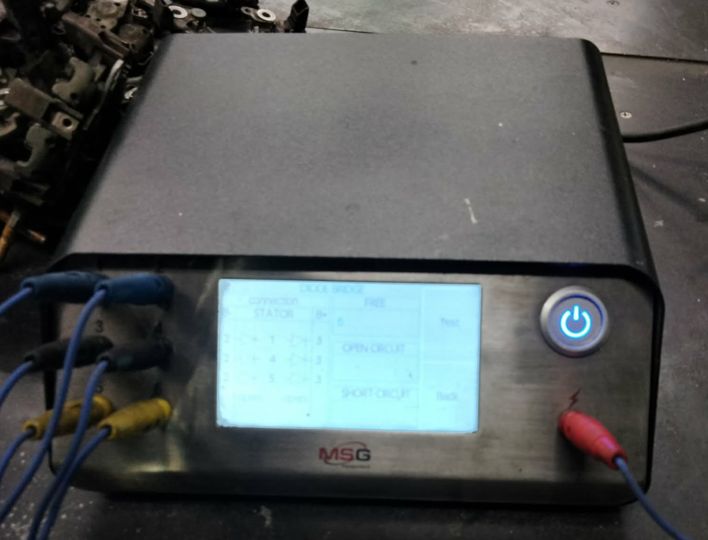 MSGの説明では、ステーターについては コア短絡、ターン間短絡、相間短絡、巻線断線 を見つけられるとされています。ダイオードブリッジについては 1個または複数ダイオードの破壊・不良、ヒートシンク間短絡 を検出できます。